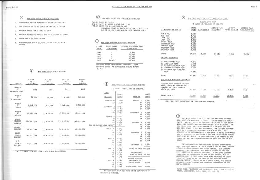 For comparison, here’s an example of one page from a Hudson Institute “chartbook” from 1973. This is the only example of a chartbook I could find online without exerting an undue amount of effort. The chartbook served as a sort of appendix to the Institute’s policy analysis of increased legal gambling in New York. And as you will see, the chartbook doesn’t have a whole lot in common with Gunkel’s own chart.